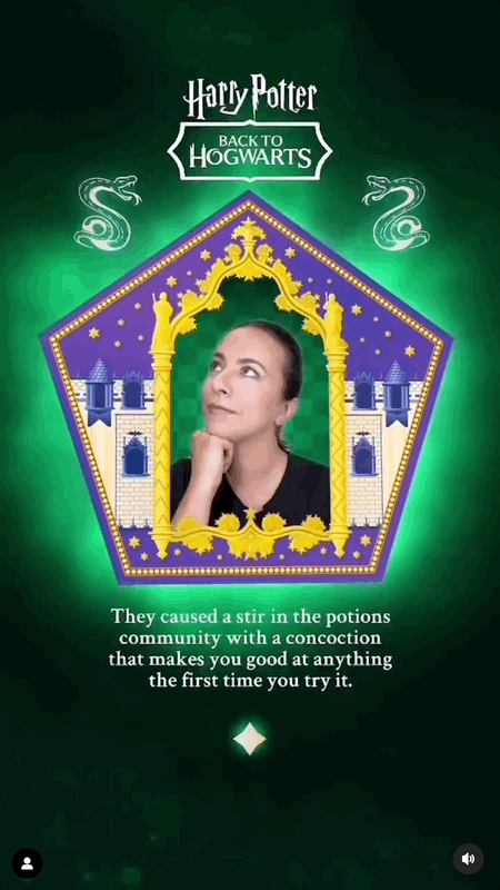 With the Chocolate Frog effect, Potterheads created their very own Famous Witch or Wizard card. By uploading their photo and choosing their magical accomplishment from over 30 pre-written descriptions, fans were able to create their own custom card that reflected their personality and interests.